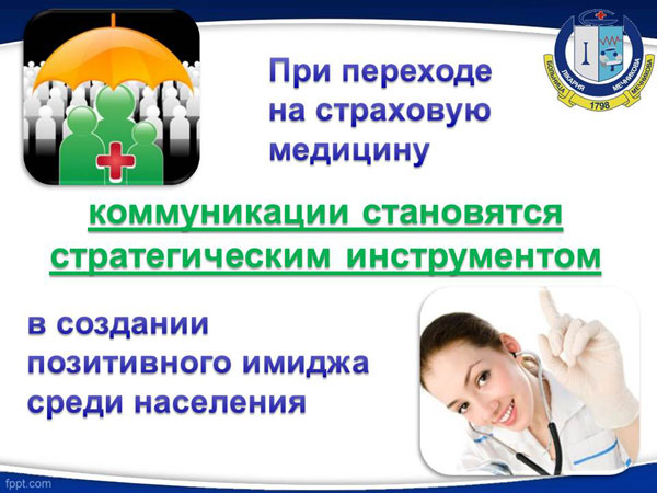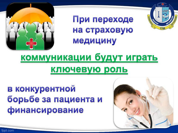 Ответ простой. Потому что, при переходе на страховую медицину коммуникации становятся стратегическим инструментом в создании позитивного имиджа медицинского учреждения среди населения.
