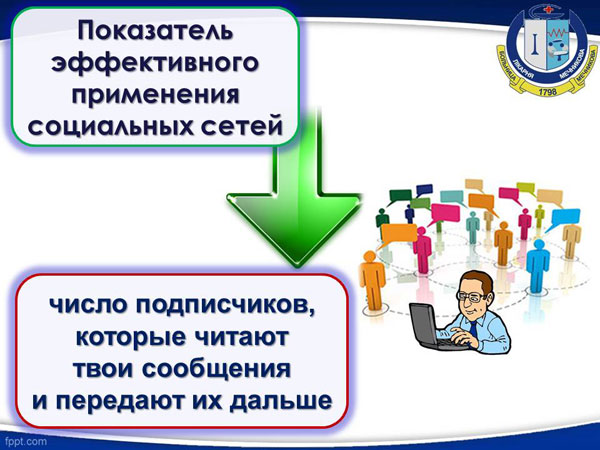 Одним из показателей эффективного применения социальных сетей является число подписчиков, которые читают твои сообщения и передают их дальше.