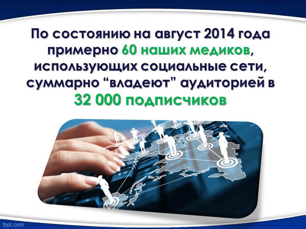 По состоянию на август 2014 года примерно 60 наших медиков, использующих социальные сети, суммарно "владеют" аудиторией в 32 000 подписчиков.